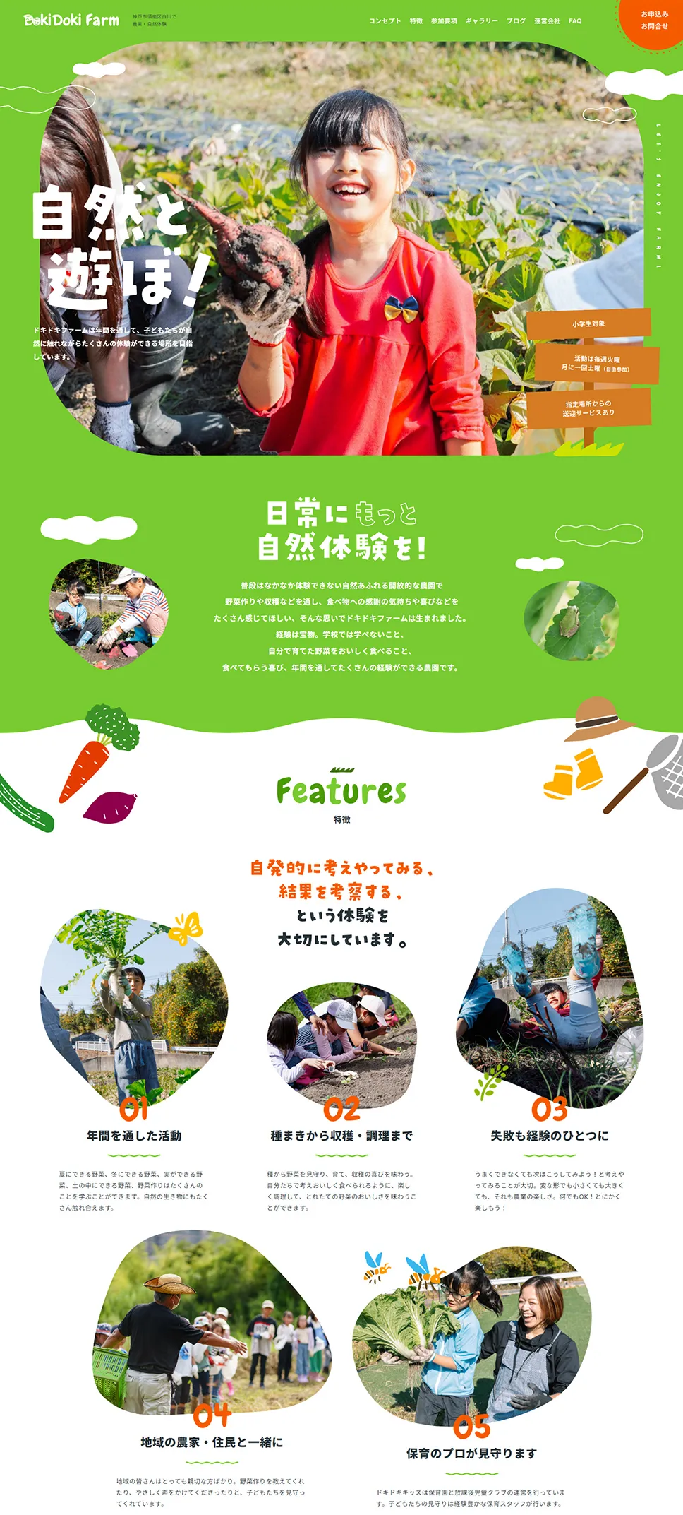 神戸市須磨区で農業・自然体験ができるドキドキファーム様のサイトを制作させていただきました。